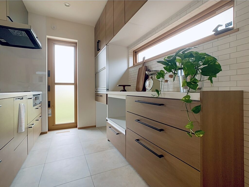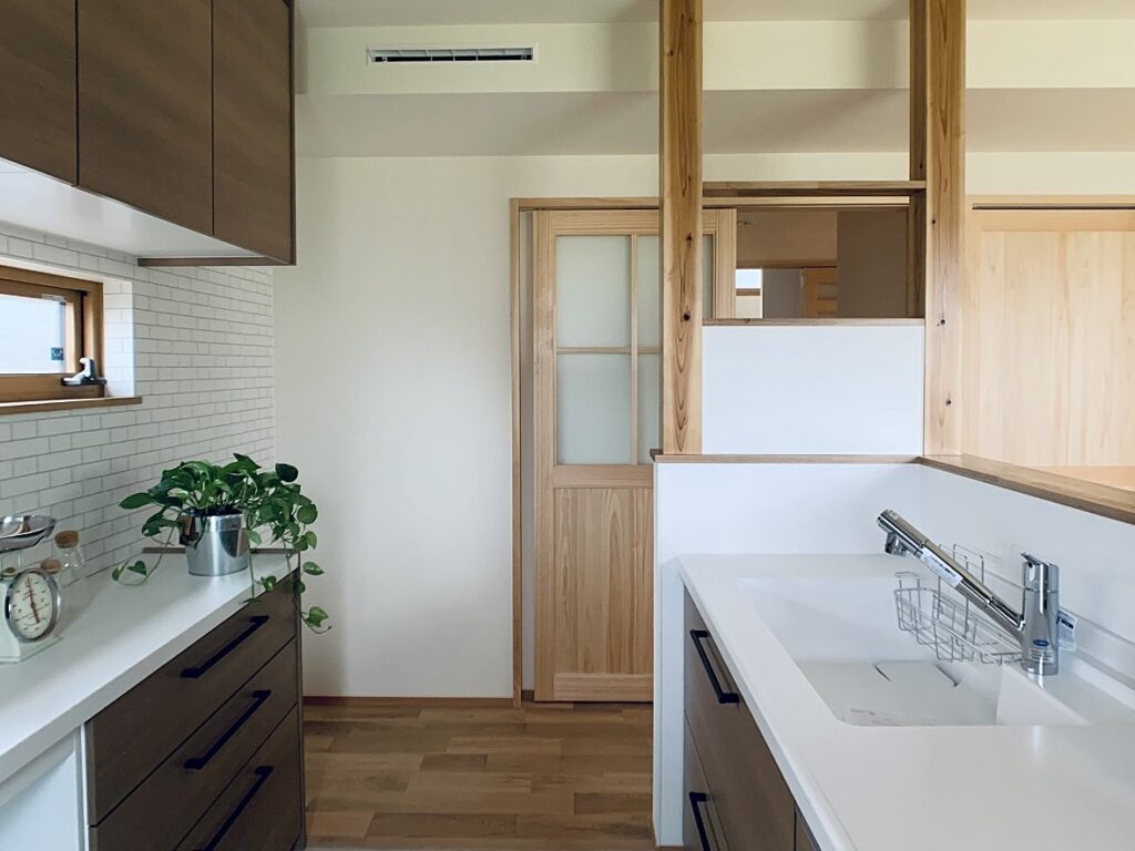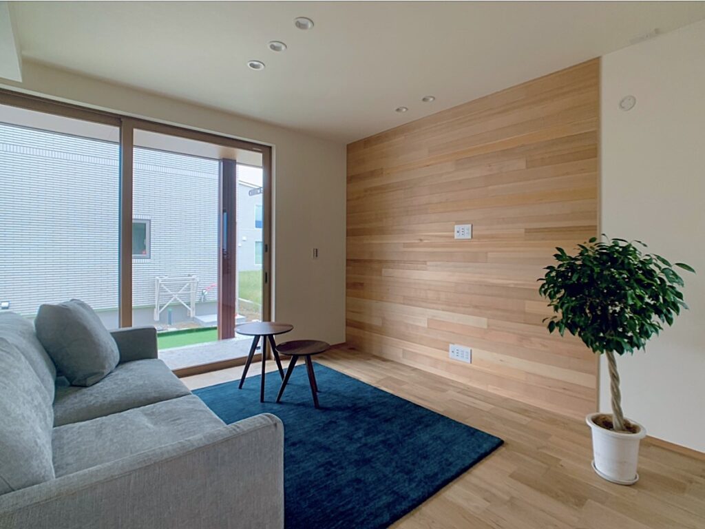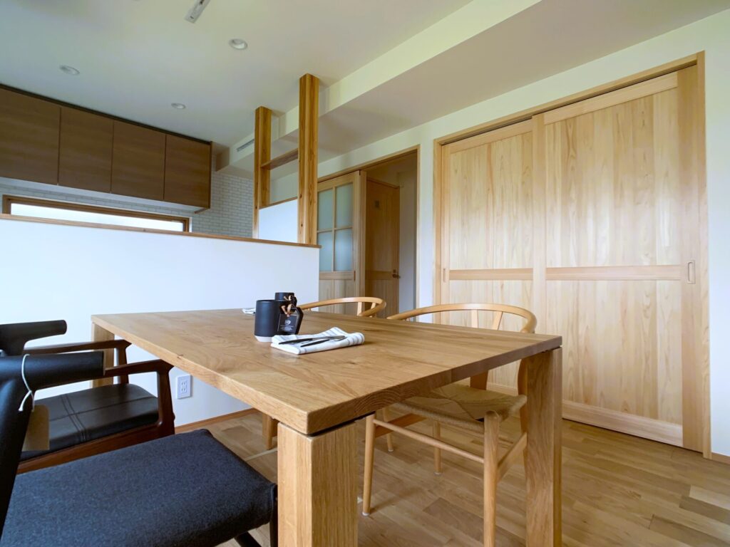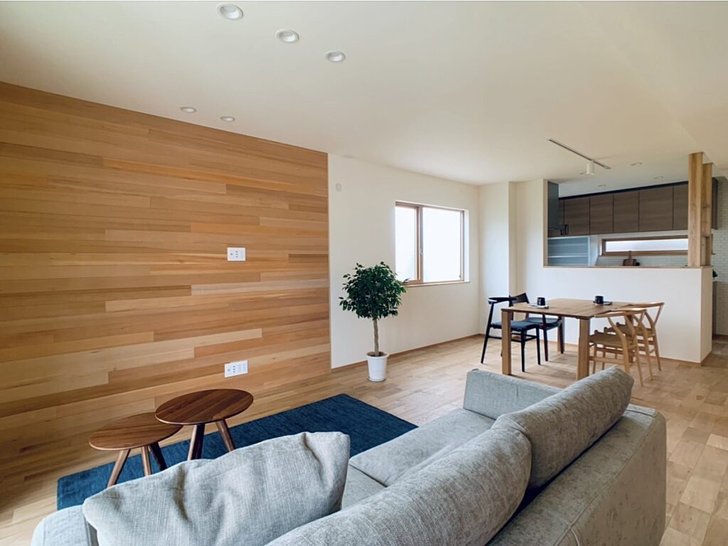 こだわりの空調設備を採用した建物内どこにいても快適な温度を保ちます。ガルバリウムと漆喰塗り壁をミックスした外観、木の温もりにあふれる室内は家族の暮らしをいつまでも彩ります