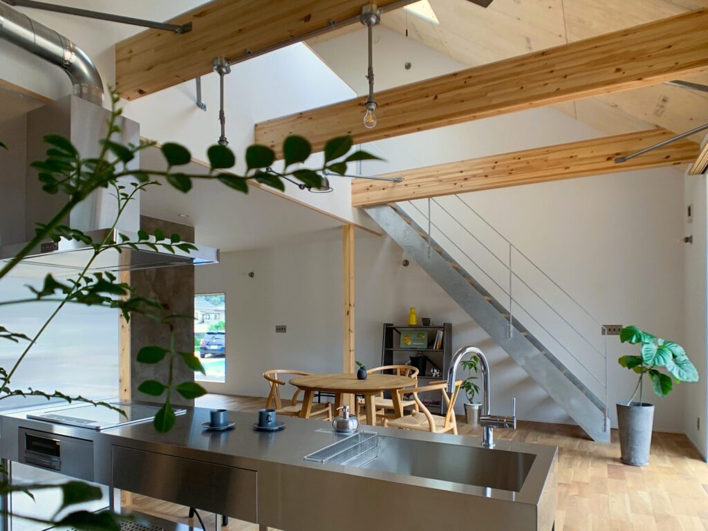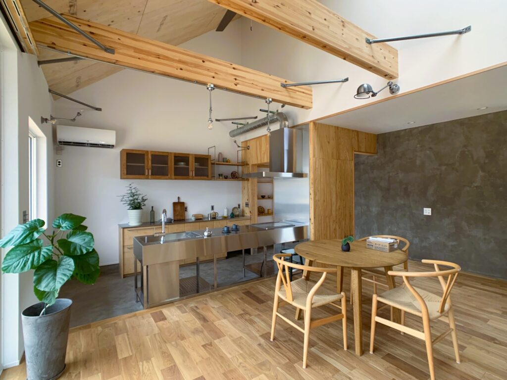 床はモルタル風に仕上げた土間仕様で、機能性とデザイン性を兼ね備えています。