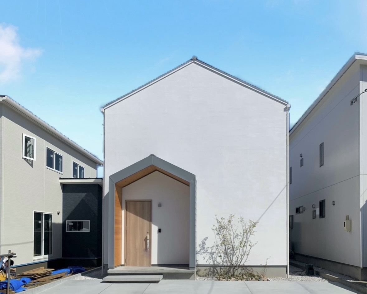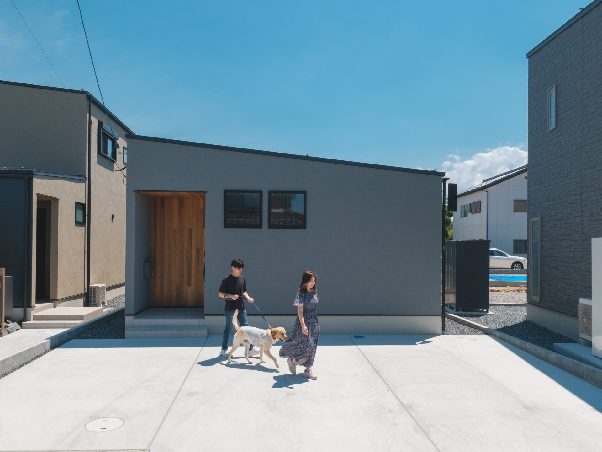 穏やかに時間が流れる自然豊かな場所での暮らしが理想のご家族。大開口の窓で庭を囲み、リビングと庭が一体に感じられる開放的なお住まいです。さらに食事をしたりお酒を楽しむこともできるキッチンカウンターは家族とコミュニケーションを取りながら料理ができるのも魅力的。青空に向かって延びる勾配天井で空間の広がりをうみ、のびやかに暮らしを楽しみたいご家族にぴったりのお住まいとなりました。